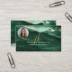Green Agate Gold Glitter Script Monogram Photo Business Card