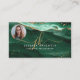 Modern, stylish professional business card with green agate and marble with faux gold glitter veins and sparkle accents personalised with fancy handwritten script monogram initials with swashes and name and your photo. ASSISTANCE: For help with design modification or personalisation or if you would like coordinating items, contact the designer BEFORE ORDERING via the Zazzle Chat MESSAGE tab or email makeitaboutyoustore@gmail.com.