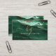 Green Agate Script Monogram Faux Gold Glitter Business Card