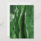 The left-hand edge of this elegant modern wedding anniversary party invitation features a green watercolor agate border trimmed with silver faux glitter. The customizable text combines charcoal gray handwriting, copperplate and italic fonts on a white background. The reverse side features a matching green and silver agate design.