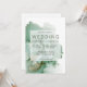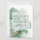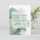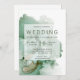 Interesting and modern wedding invitation featuring a green emerald alcohol ink background with subtle faux gold drips. Your details are overlaid on a sheer transparent white square.
