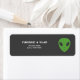 A funny return address label to stick on your letter or package. A green alien head on a black background for those who believe!