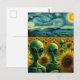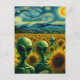Green Aliens in a Van Gogh Sunflower Field Postcard