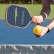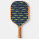 Create a personalised gift that's perfect for someone who loves alligators and other animals. This pickleball paddle has a realistic style illustration of an alligator in an olive green colour set against a navy blue patterned background and is ready to be personalised with a name in matching olive green lettering. The reverse side has a coordinating alligator pattern.