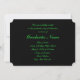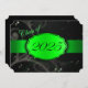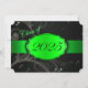 Green and black graduation invitation with light and dark green floral and a green ribbon going across showing the year of graduation. The back of the card is black with light green font for people to fill in the graduation announcements.