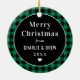 Green and Black Buffalo Plaid Custom Holiday Photo Ceramic Ornament