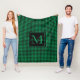 Green And Black Buffalo Plaid Monogrammed Custom Fleece Blanket