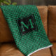 Green And Black Buffalo Plaid Monogrammed Custom Fleece Blanket. Ready to be personalised with your family name.