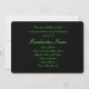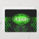 Green and black graduation invitation with light and dark green stripes and a green ribbon going across showing the year of graduation. The back of the card is black with light green font for people to fill in the graduation announcements.