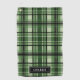 Destei's original plaid / tartan pattern featuring a green and black colour scheme. There is also a personalizable text area for a name.