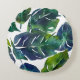 Green and Blue Foliage Philodendron Botanical Round Cushion