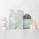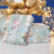 The green and blue garden party wrapping paper has a vintage and shabby chic look to it. The colourful design is soft, elegant, and cute, making it perfect to wrap a special gift for your mum, sister, friend, bridal shower, or even your teacher. The paper is adorned with watercolor illustrations of butterflies, teacups, teapots, hearts, flower bouquets, and round and square frames. All of these elements are set against a delicate background of white and blue paint brush squares and a green screen.