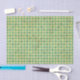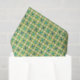 This tissue paper features a geometric pattern in green and blue on a beige background. Perfect for wrapping gifts for any occasion.