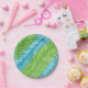 Green and Blue Palm Leaves Pattern Paper Plate