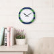 Green and Blue Stripes and Monogram Large Clock