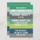 These cool and modern invitations can be used for birthday parties and other events. They feature an eye catching background of bold stripes in lime green, kelly green, light blue, royal blue and shades of grey and all of your party details in distressed style white lettering. Use the template fields to easily add all of your party details.