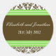 Green and brown damask wedding sticker which can be used as an invitation seal.
