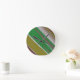Green And Brown Diagonal Abstract Round Clock