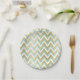 Green and Faux Gold Foil Chevron Ikat Pattern Paper Plate