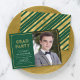 Invite friends and family to your graduation party with this classy modern photo graduation party featuring the words "Grad Party" in a stylish geometric line font and a border both in faux gold foil against a green background. Card has a faux gold foil stripes pattern against a green background back side.