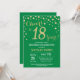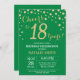 18th Birthday Invitation with Green and Gold Glitter Diamond Background. Gold Confetti. Adult Birthday. Male Men or Women Birthday. For further customisation, please click the "Customise it" button and use our design tool to modify this template.