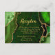 Make a bold and elegant statement with this green and gold agate marble wedding reception card. Featuring rich jewel-toned emerald hues, organic stone textures, and shimmering gold accents, this design beautifully complements a luxurious wedding celebration. Perfect for formal, modern, or glamorous events, the dramatic contrast of green and metallic gold sets the tone for an evening of cocktails, dinner, and dancing. Fully customizable with your reception details, this agate-inspired reception enclosure adds a refined and cohesive touch to your wedding stationery suite, ideal for fall or winter weddings.