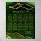 Welcome guests in style with this green and gold agate marble wedding seating chart, designed to make a striking statement at your reception. Rich jewel-toned greens, organic stone-inspired patterns, and luminous gold accents create a refined and dramatic display ideal for fall or winter weddings. The deep emerald palette paired with metallic gold detailing complements elegant, modern, and glamorous celebrations while enhancing your décor. This seating chart is formatted for 10 tables and can be fully customized to accommodate additional tables, guest counts, and layout preferences, ensuring a seamless fit for your wedding day.
