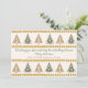Christmas and Holiday greeting of rows of trees in green and gold with smaller rows of hearts between.