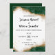 This wedding invitation features a rich emerald green and gold theme. The design includes a luxurious shiny gold border that blends with the deep green edges, creating an elegant and sophisticated look to celebrate your special day.