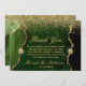 Green and Gold Faux Glitter Agate Wedding Thank You Card