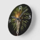Green and Gold Fireworks Holiday Celebration Round Clock