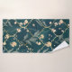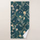 Velvety, deep green background with gold Moroccan pattern and peachy orchid flowers.