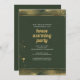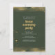 Green and gold leaf effect Party Invitation is a beautiful way to invite your friends and family to your new home. It features a gold geometric pattern against a black background, with the couple’s name, event details and the address of their new home. We love the combination of modern meets traditional style in this design.