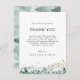 This green and gold mountain thank you reception card is perfect for your elegant boho mountain forest wedding. With a rustic emerald green watercolor landscape dotted with trees, birds, and highlights of gold foil. It's just what you're looking for to complete your unique modern destination wedding.
