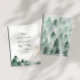 This green and gold mountain wedding invitation is perfect for your elegant boho mountain forest wedding. With a rustic emerald green watercolor landscape dotted with trees, birds, and highlights of gold foil. It's just what you're looking for to complete your unique modern destination wedding.