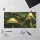 Green and gold mushroom on floral desk mat