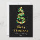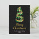 This elegant and chic holiday card can be personalised with your family name. The design features a green and gold ribbon Christmas tree with baubles. The text combines handwritten script and modern sans serif fonts for a classy and sophisticated look. The falling snow, snowflakes and sparkles give a festive and magical touch.