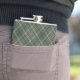 Warm dusty greens in light and deep tones with gold highlight in a diagonally-orientated traditional tartan pattern.