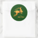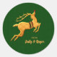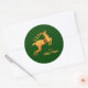 Green and Gold Reindeer on Damask Classic Round Sticker