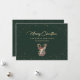 Custom green and gold Merry Christmas card featuring a gold reindeer silhouette and a snow vignette. A faux gold foil script holiday greeting adds a more festive look to this holiday card. Easily personalise this green holiday card with your family name and text or customise it to create a beautiful business holiday card. The gold foil effect is only simulated in the artwork. More colour options available.