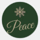 Green and Gold Snowflake Peace Holiday Classic Round Sticker