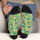 These fun green and gold St. Patty's Day socks feature a pattern with hand-drawn Irish gold coins and green shamrocks in black in. The phrase, "Lucky You" is scattered all throughout.