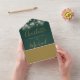 All in one wedding invitation with pretty string lights, signature style names and chic gold typography on an emerald green background. The invitation includes a perforated RSVP card featuring a QR code. Designed by Thisisnotme©