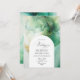 Green and ivory watercolor ink wedding invitation with accents of gold.
