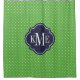 Green and Navy Tiny Dots Monogram Shower Curtain