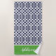 This custom made-to-order beach towel has a preppy trellis pattern in navy blue, green and white. Personalise it with your name monogram or other custom text in a modern script font. Use the design tools to choose any background colours, edit the text fonts and colours or upload your own photos to create a custom monogrammed beach towel.