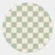 Green and Off White Chequerboard Classic Round Sticker
