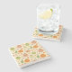 The coasters are gorgeous, a quality feel and heavy weight. They look like a precious archeological find. A rustic stone juxtaposed with a modern floral black and white print. I like the way the print goes slightly imperfect on the cut stone edges giving them a kind-of natural beauty.