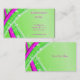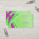A trendy business card done in green and hot pink. The left side has a green and pink criss cross pattern. The right side is green with hot pink text. Great for any business or occupation.