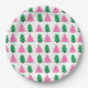 Green and Pink Christmas Trees Paper Plate